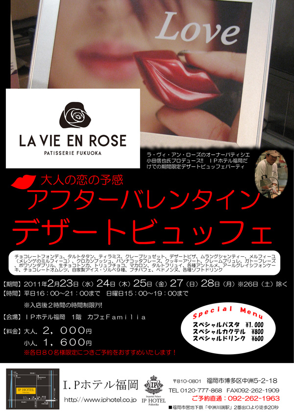 中洲のIPホテル福岡にて現在開催中のアフターバレンタインデザートビュッフェ♪