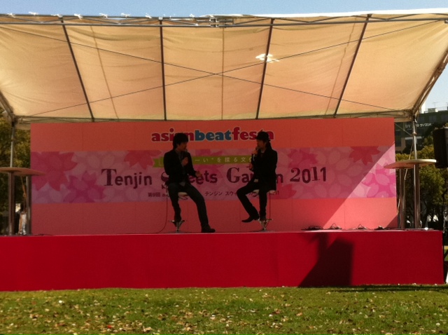 16区の三嶋オーナーやテンジン大学の岩永学長、さとぴーの四人で楽しく福岡の甘いを探るトークショーでした。