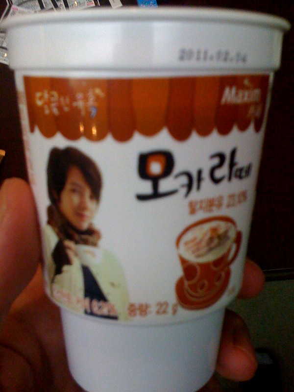 コンビニ店頭で、900Wで売ってたカップコーヒー、お湯を注いで混ぜるだけ!