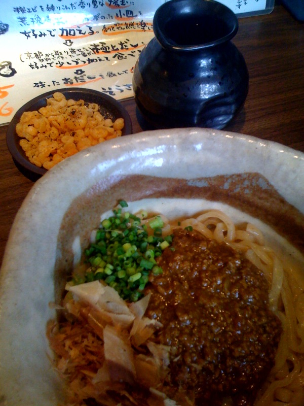 天かすと桜海老を混ぜてまた違った味になり、さらにつゆをぶっかけて、また違う味に変化した味を楽しみつつ一滴も残さずたいらげたよ♪