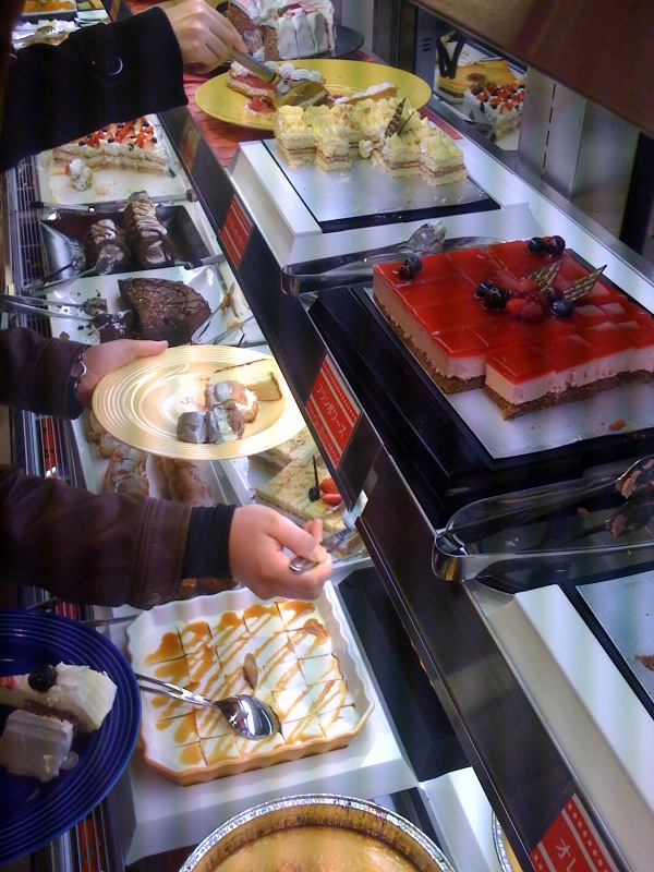 お隣の席の女性二人組みもテーブルの上に大盛りのケーキ類4皿持って来て、さらに他のものを取りに行ってまだ席に戻ってきてませんwww